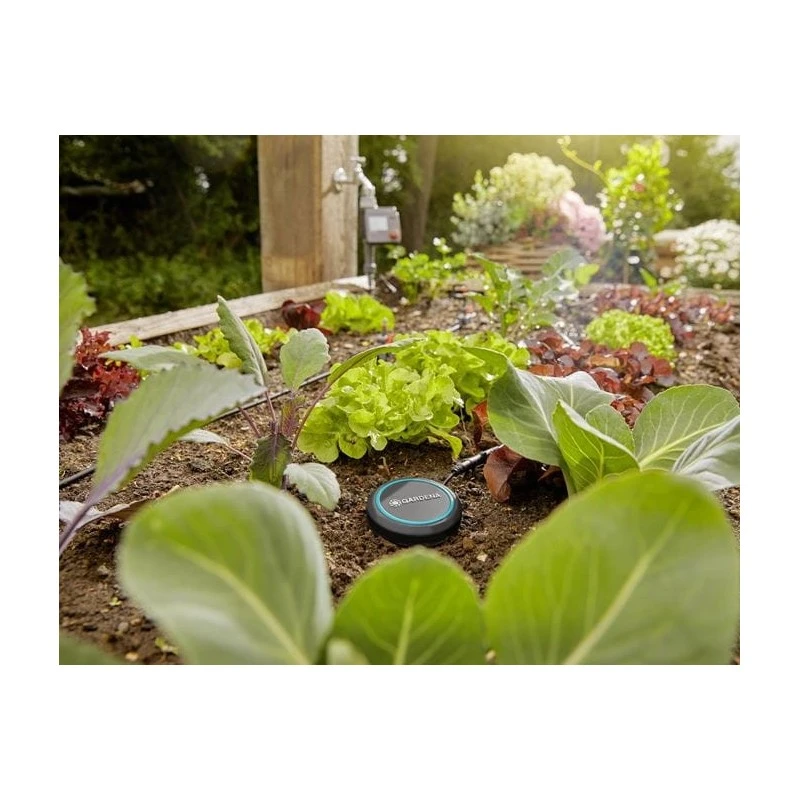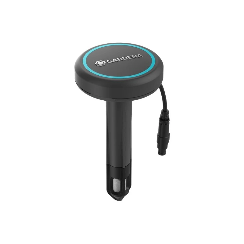 zorgt er automatisch voor dat uw tuin naar behoefte wordt bewaterd en bespaart water door de huidige bodemvochtigheid te meten. De compacte bodemvochtigheidssensor werkt volgens een elektrothermisch meetprincipe en verzendt de gemeten bodemvochtgegevens naar een automatisch bewateringssysteem. Afhankelijk van het vochtniveau wordt de geplande bewateringscyclus van het bewateringssysteem overgeslagen of onderbroken. Op deze manier worden uw planten betrouwbaar en nauwkeurig verzorgd. De sensor is compatibel met de GARDENA Water Controls en Multi-Channel Controls. De aansluitkabel van vijf meter waarborgt flexibele plaatsing en kan naar behoefte worden verlengd met een verlengkabel. Dankzij het kleine, compacte formaat is de sensor ideaal voor borders en bloempotten. Dankzij de lage hoogte en vlakke bovenzijde is het systeem geschikt voor gebruik in combinatie met grasmaaiers en robotmaaiers. Voor controle kunnen alle gemeten waarden worden bekeken op de aangesloten Water Control. Als de twee AA-batterijen (niet meegeleverd) die ongeveer een jaar meegaan, bijna leeg zijn, wordt dat aangegeven op de Water Control-eenheid en door een led in het batterijcompartiment, waardoor een nog betrouwbaardere werking wordt gegarandeerd.