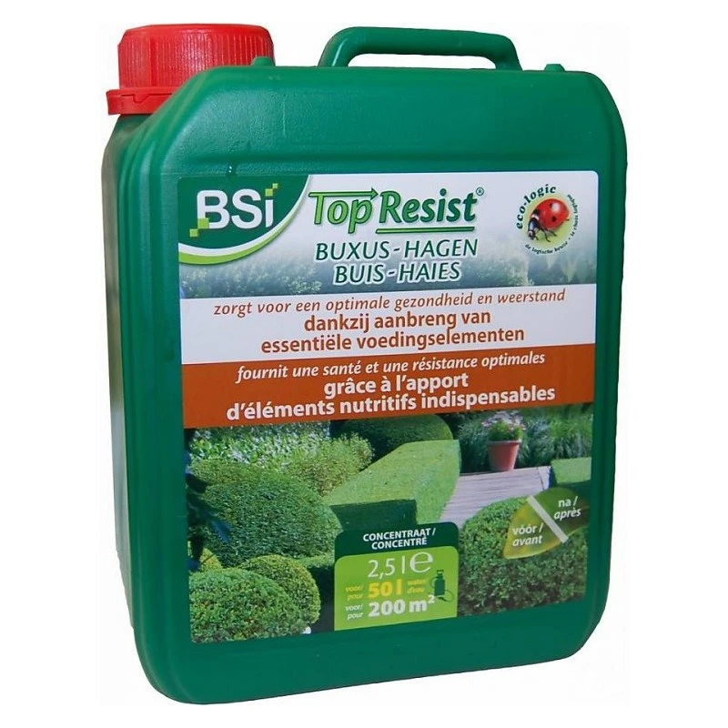 voor een gezonde groei en een optimale weerstand van uw buxus. Top Resist Buxus Hagen Zorgt voor een gezonde groei en een optimale weerstand dankzij de aanbreng van onmisbare en snel opneembare voedingselementen. De plant eigen weerstand wordt snel verhoogd en blijft behouden bij herhaalde toepassing.