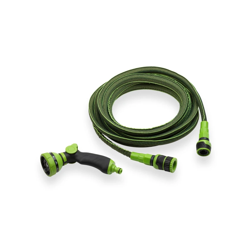 met handige 10 standen sproeier en kraanstuk voor het monteren op de kraan. De flexibele tuinslang zet uit op het moment dat er water in de slang komt. Door de waterdruk zet de tuinslang uit van 7.5 meter tot 15 meter.