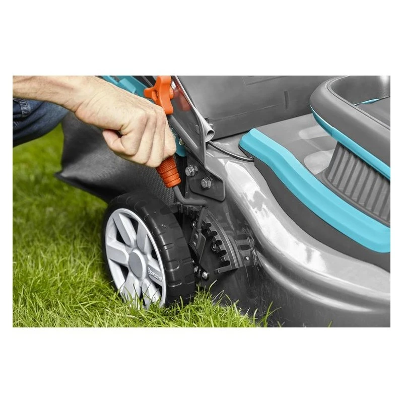 De gewenste maaihoogte kan in 10 stappen eenvoudig worden aangepast door “duwen en draai” met de centrale hoogteverstelling QuickFit.