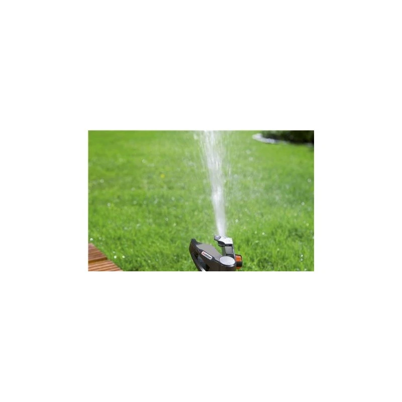 heeft een stevig ontwerp van kunststof. Op de speciaal gemonteerde stelringen kunt u eenvoudig instellen welke sector er moet worden besproeid met fijne instelmogelijkheden van 25° tot 360°. De geselecteerde sector kan altijd vanaf deze stelringen worden bekeken. U kunt het bereik instellen met de grote, eenvoudig te gebruiken draaiknop. Dit kan worden ingesteld van 5 m tot maximaal 12,5 m. Er kan een oppervlak van 75 m² tot maximaal 490 m2 worden besproeid. De sproeier wordt op een kunststof spike gemonteerd. Hiermee kan de GARDENA Pulserende sector- en cirkelsproeier eenvoudig in het gazon worden geplaatst. En de sproeier kan net zo gemakkelijk weer ergens anders worden neergezet. De sproeier is voorzien van het verbindingsstuk en de einddop van het GARDENA System. U kunt het systeem meteen in uw tuin gebruiken. Als u een groter oppervlak wilt besproeien, koppelt u gewoon meerdere sproeiers aan elkaar. Voor gemakkelijke besproeiing van uw tuin.