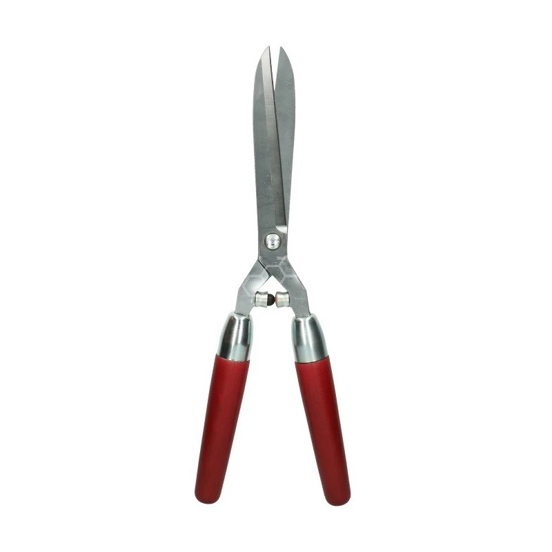 De heggenschaar 1910 heeft hardverchroomde messen en rode handvaten.
