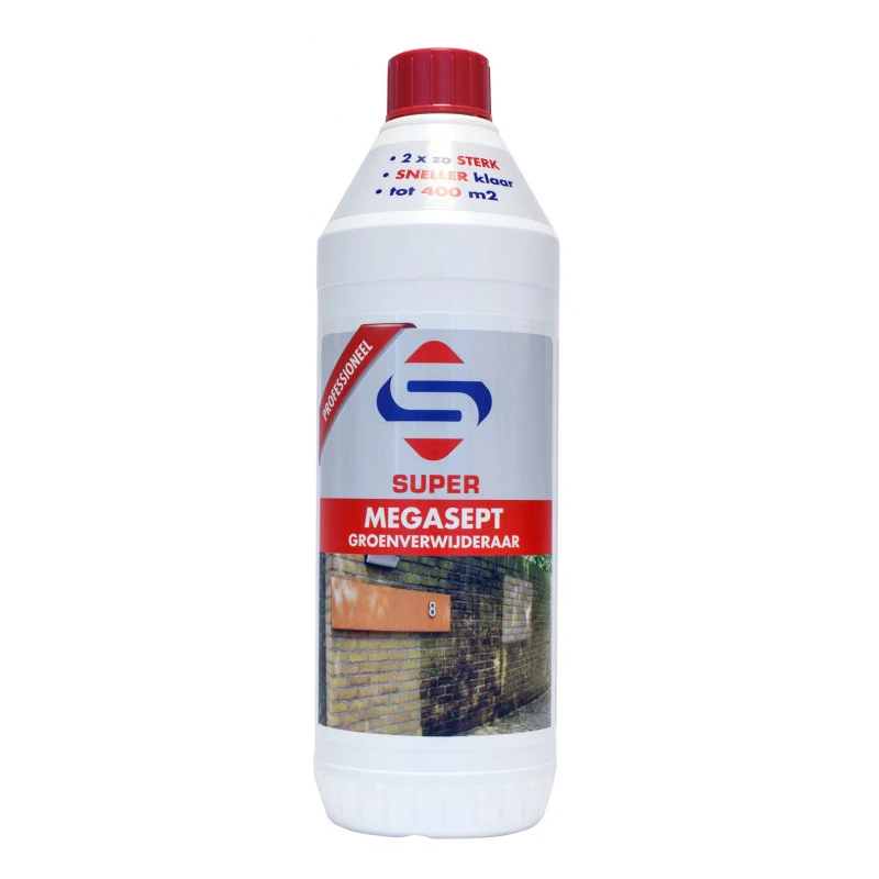 De Megasept Super Groenverwijderaar is enorm geconcentreerd en rekent snel af met alle vormen van groene aanslag op o.a. trottoir, oprijlaan, gevels, zonwering, hout, (tuin)meubilair en overige oppervlakken. Na gebruik hoeft u niet te schrobben of na te spoelen en binnen 36 uur is de groene aanslag verwijderd. Het product is uitermate geschikt voor professioneel en niet-professioneel gebruik. Voor gebruik het product aanlengen met water. Dit product is biologisch afbreekbaar.