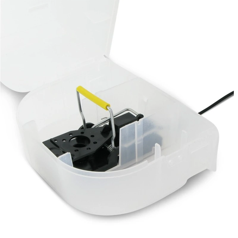 is super handig voor het vangen van muizen. Doordat de voerdoos transparant is, hoeft u de voerdoos niet te openen om te zien of u een muis gevangen heeft. De voerdoos kan worden gebruikt voor het uitzetten van muizengif of muizenkorrels maar kan ook gebruikt worden zonder gif. De muizenklem is eenvoudig vanaf de buitenkant op spanning te zetten